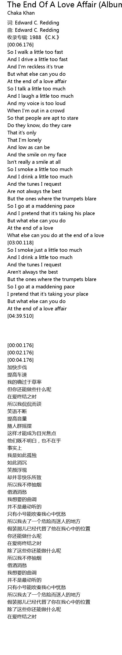| [00:46.877] | At the end of a love affair |