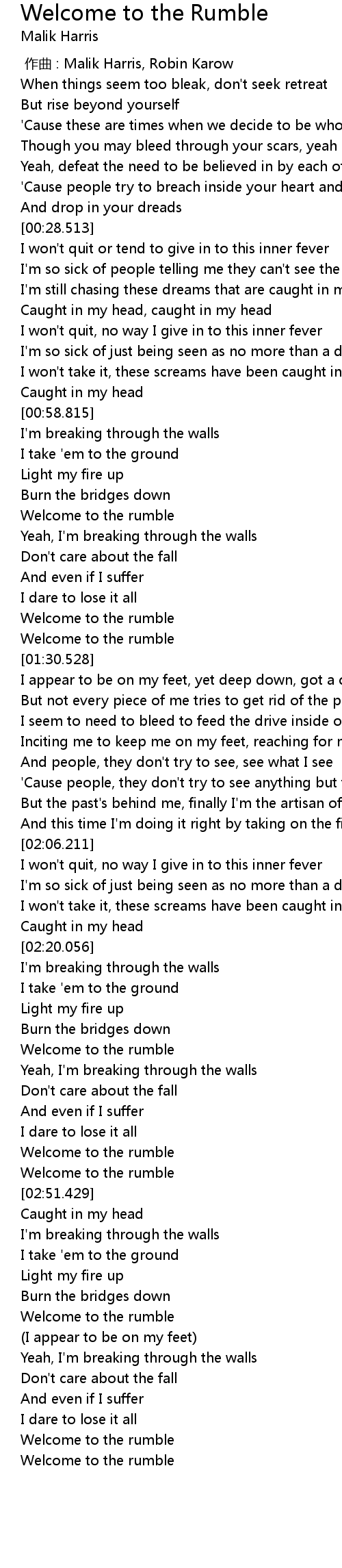 | [03:01.120] | Welcome to the rumble |