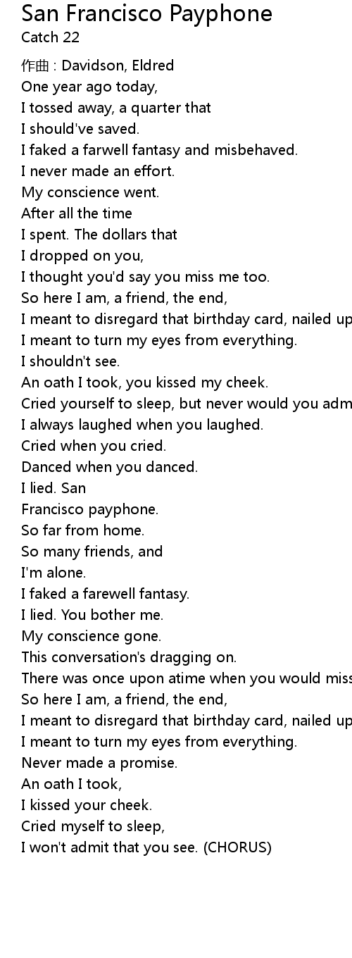 | Song | San Francisco Payphone |