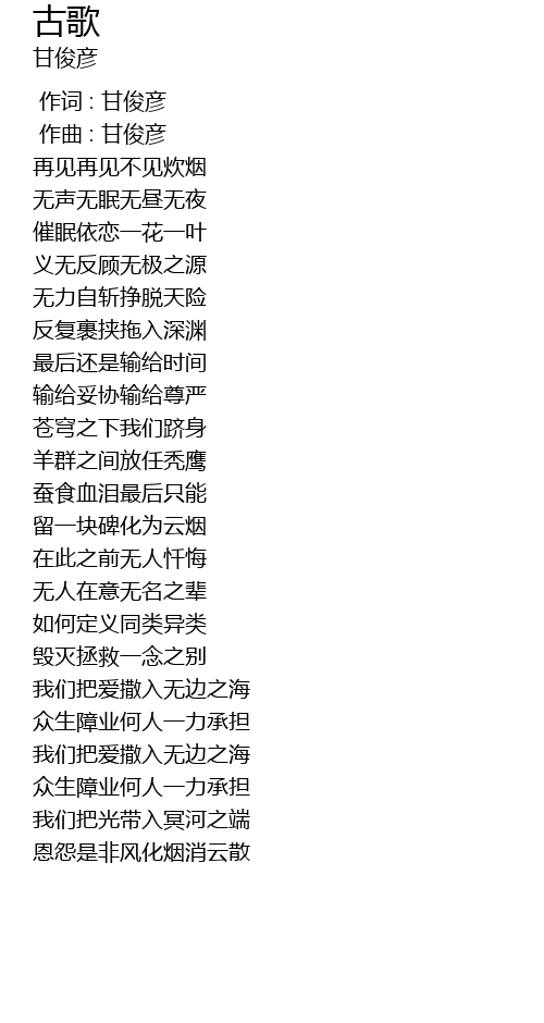 | [00:01.000] | 作曲 : 甘俊彦 |