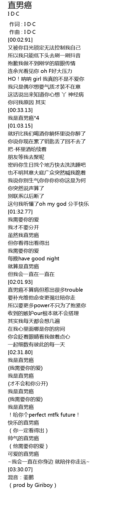 | [02:02.34] | 直男癌不算病但惹出很多trouble |