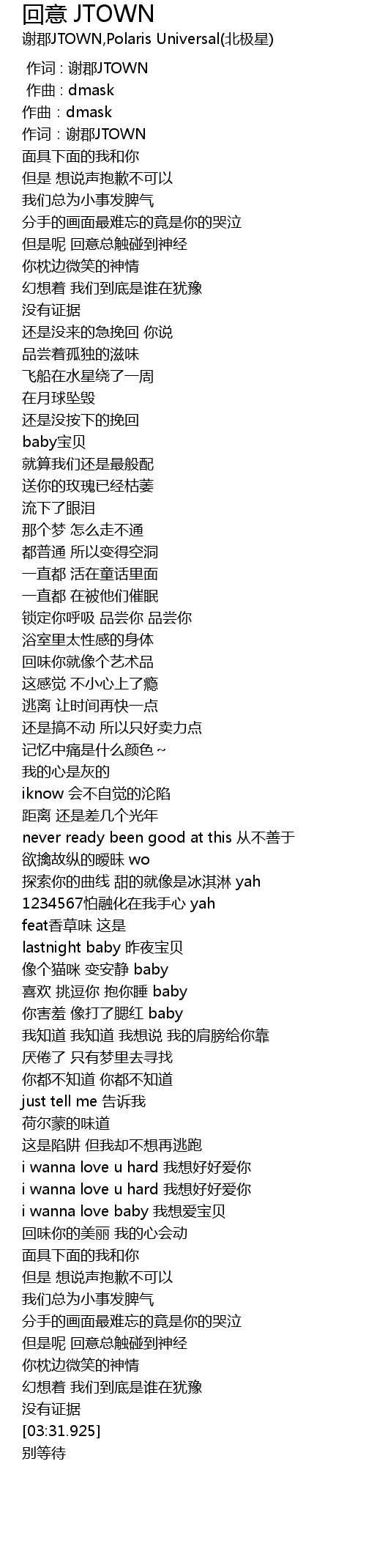| [00:00.000] | 作词 : 谢郡JTOWN |