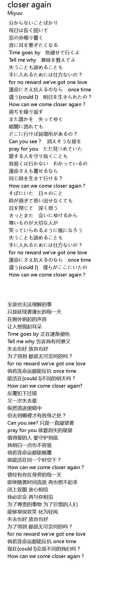 | [01:43.846] | How can we come closer again? |