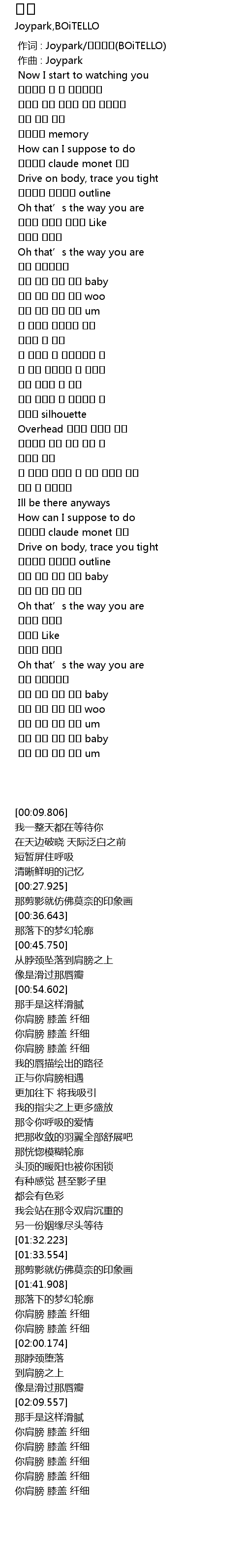 | [00:00.000] | 作词 : Joypark/보이텔로(BOiTELLO) |