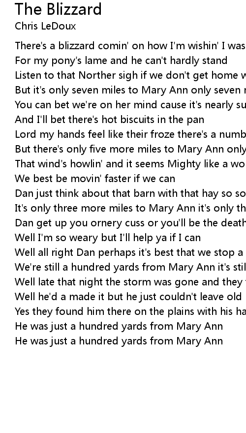 But there's only five more miles to Mary Ann only five more miles to Mary Ann |
