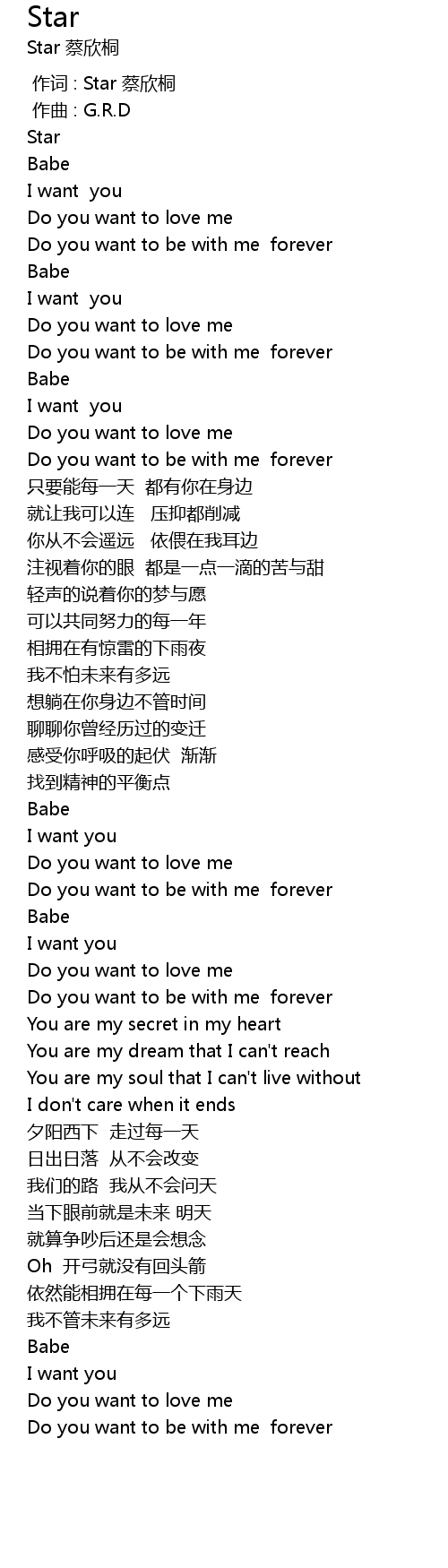 | [00:00.000] | 作词 : Star 蔡欣桐 |