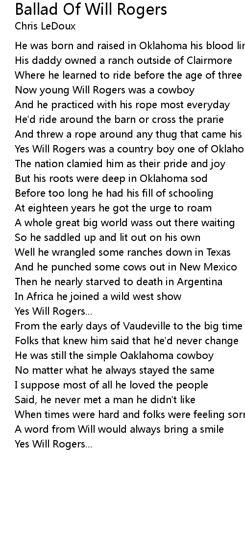 Yes Will Rogers was a country boy one of Oklahoma's favorite sons