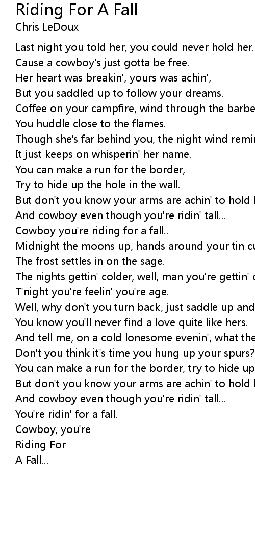 Cowboy you're riding for a fall.. |