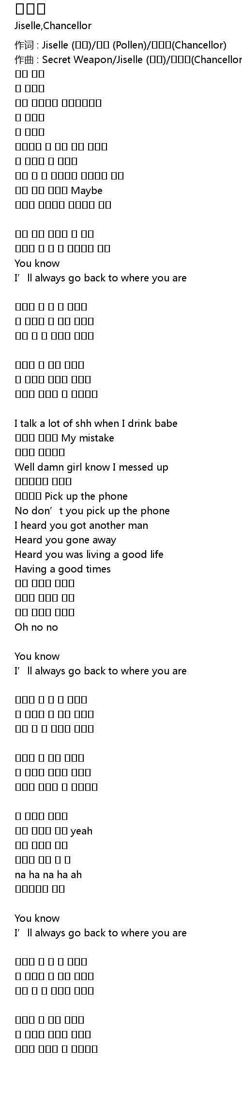 作词 : Jiselle (지젤)/폴른 (Pollen)/챈슬러(Chancellor) |