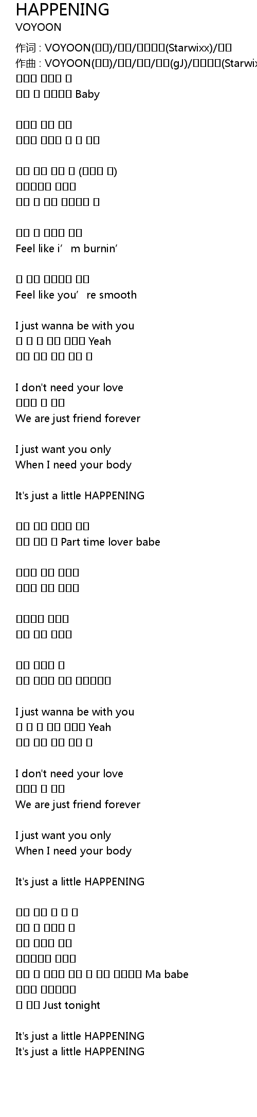 | 作词 : VOYOON(보윤)/달재/스타윅스(Starwixx)/유근 | |