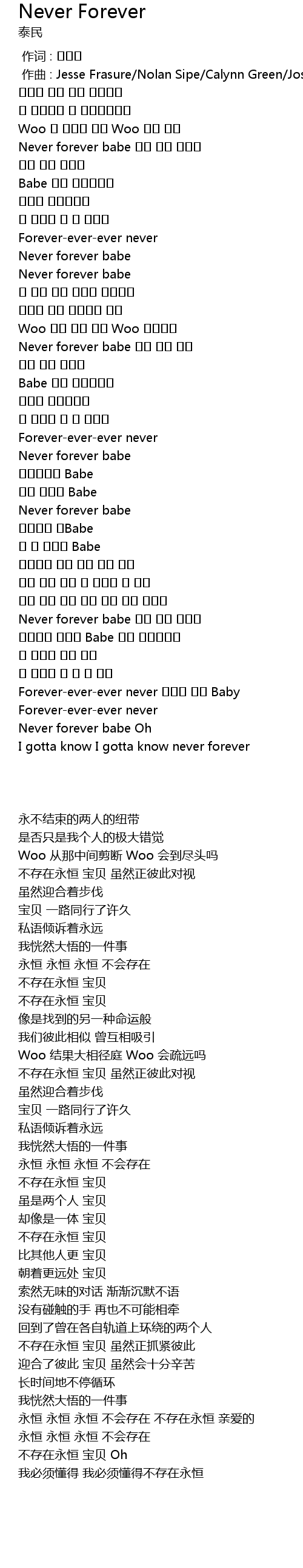 | [02:03.48] | Never forever babe 서롤 잡고 있지만 |