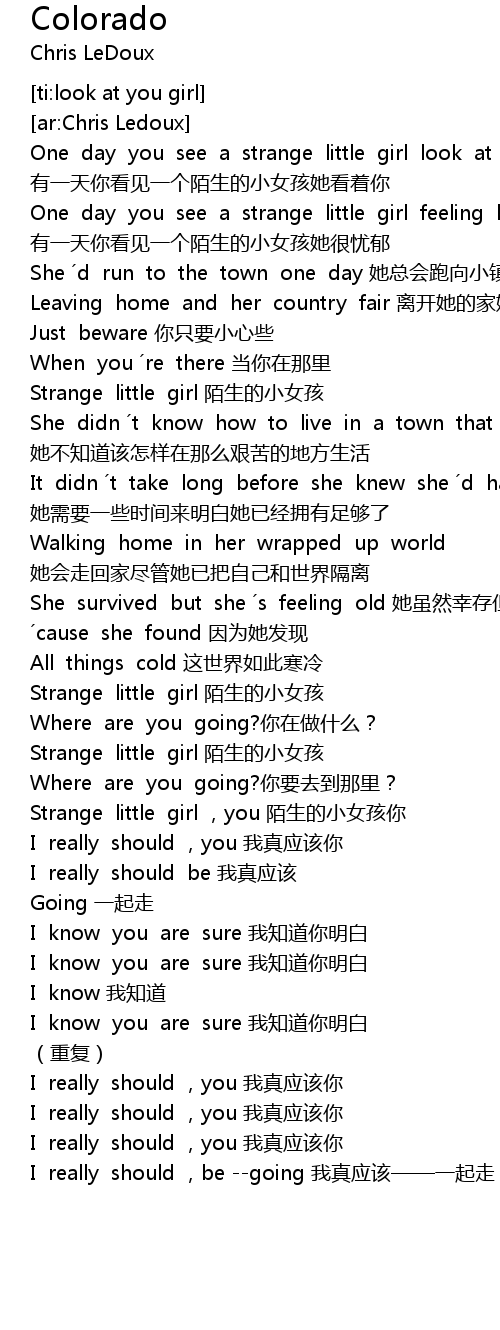 | [00:56.50] | Strange little girl ,you 陌生的小女孩你 |