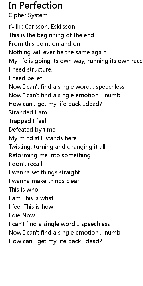 | Song | In Perfection |