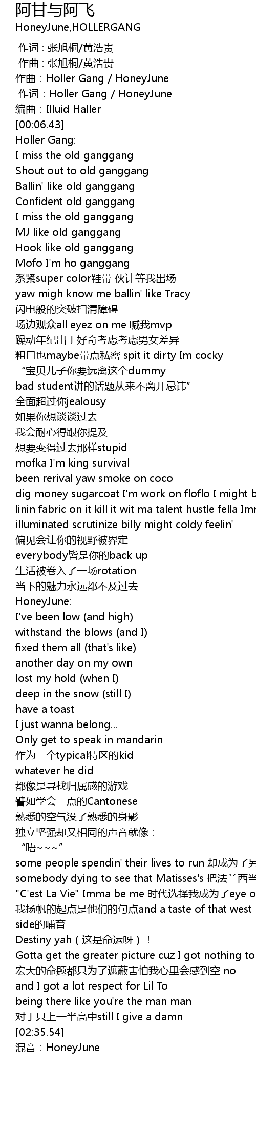 | [00:02.90] | zuo ci: Holler Gang HoneyJune |