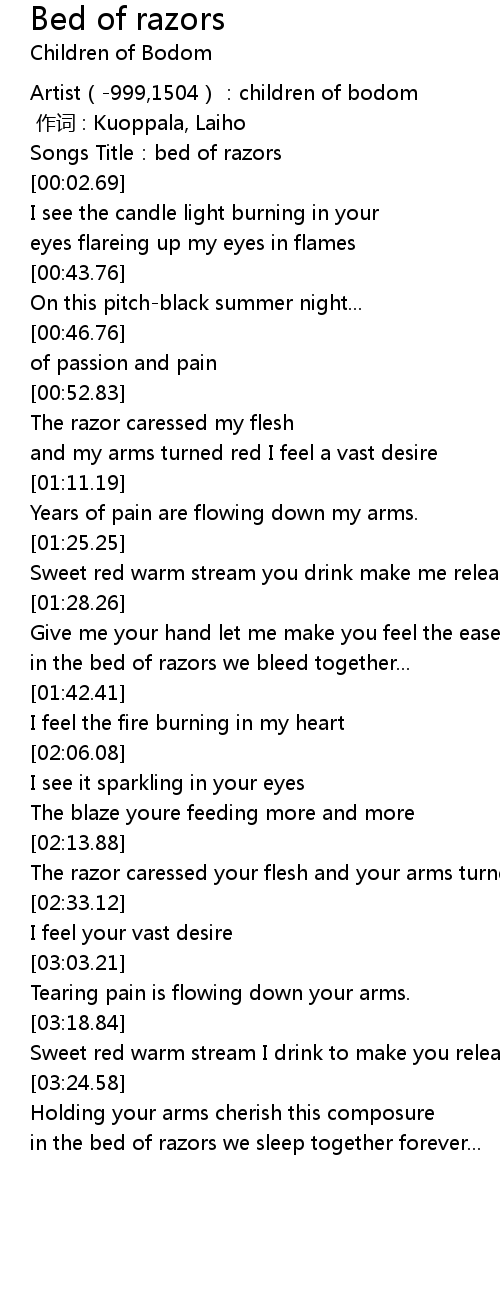 | [02:29.21] | The razor caressed your flesh and your arms turned red. |
