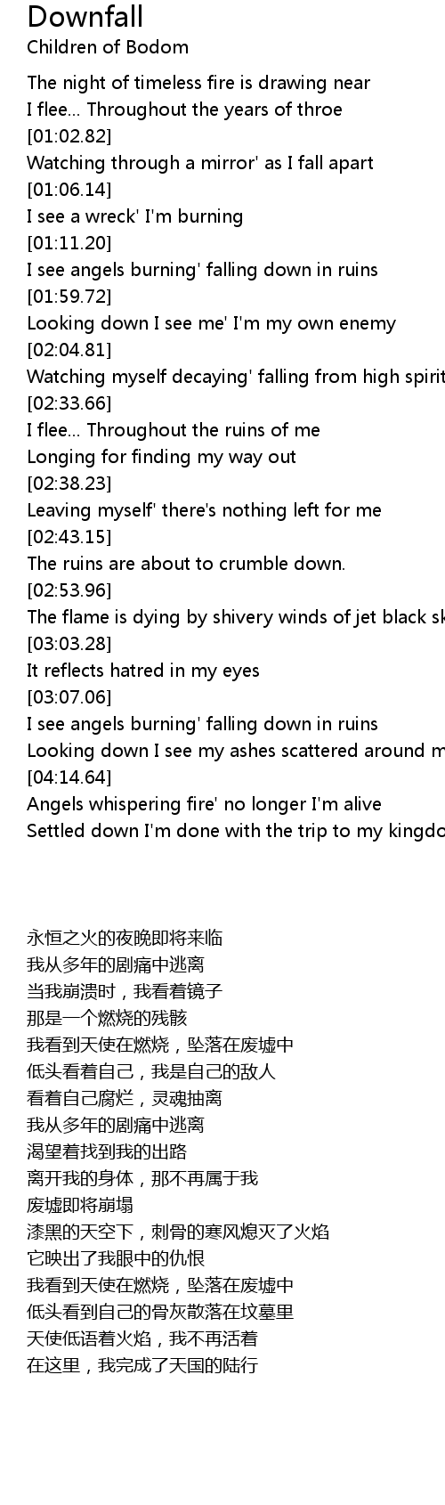 I see angels burning' falling down in ruins |