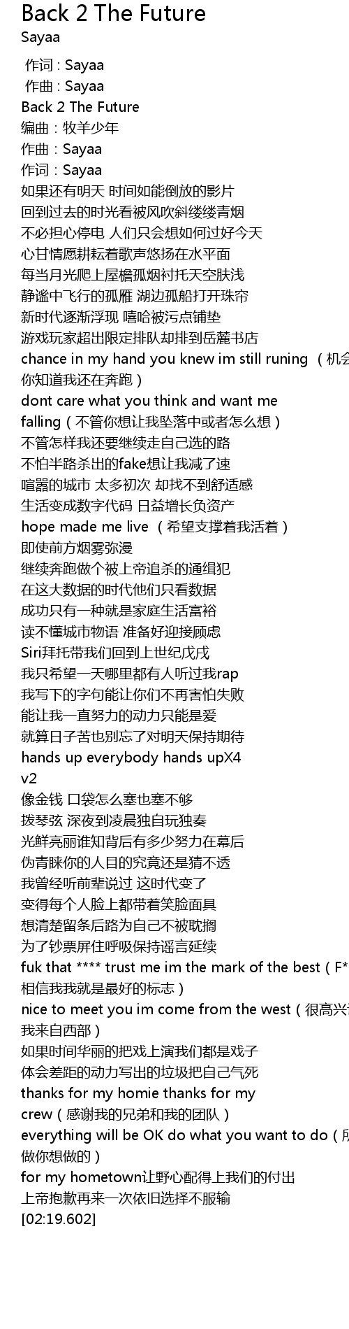 | [01:59.352] | fuk that trust me im the mark of the best F that xiang xin wo wo jiu shi zui hao de biao zhi |