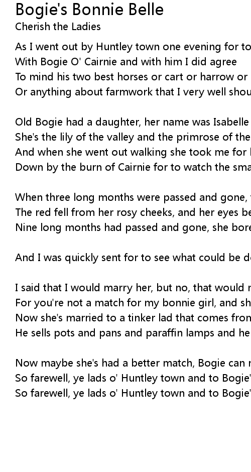 So farewell, ye lads o' Huntley town and to Bogie's bonnie belle |