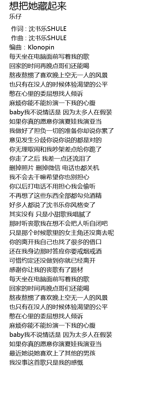 | [00:00.000] | 作词 : 沈书乐SHULE |