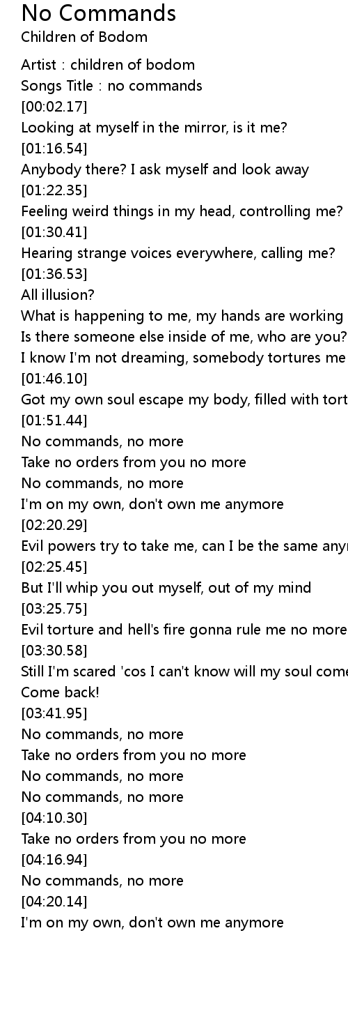 | [04:00.93] | No commands, no more |