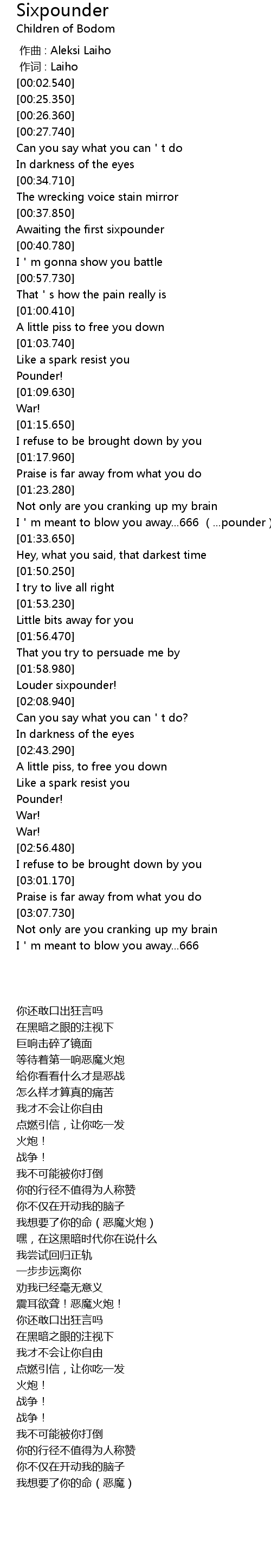 | [00:00.00] | zuo qu : Aleksi Laiho |