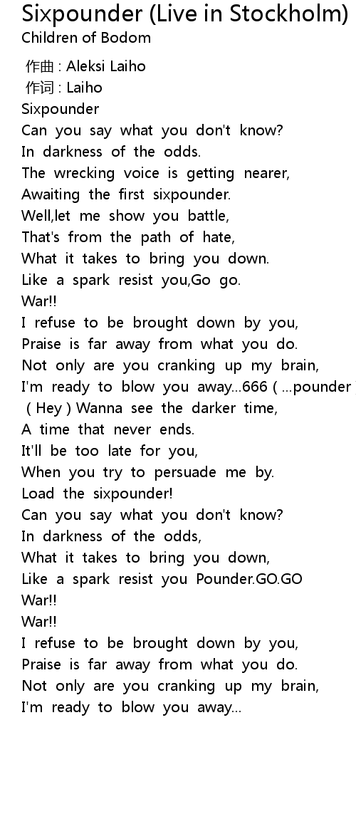 | [00:00.00] | zuo qu : Aleksi Laiho |