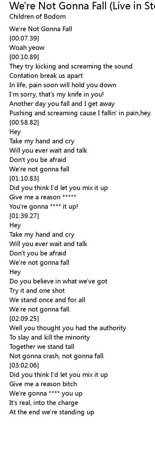 We're Not Gonna Fall (Live in Stockholm) Lyrics