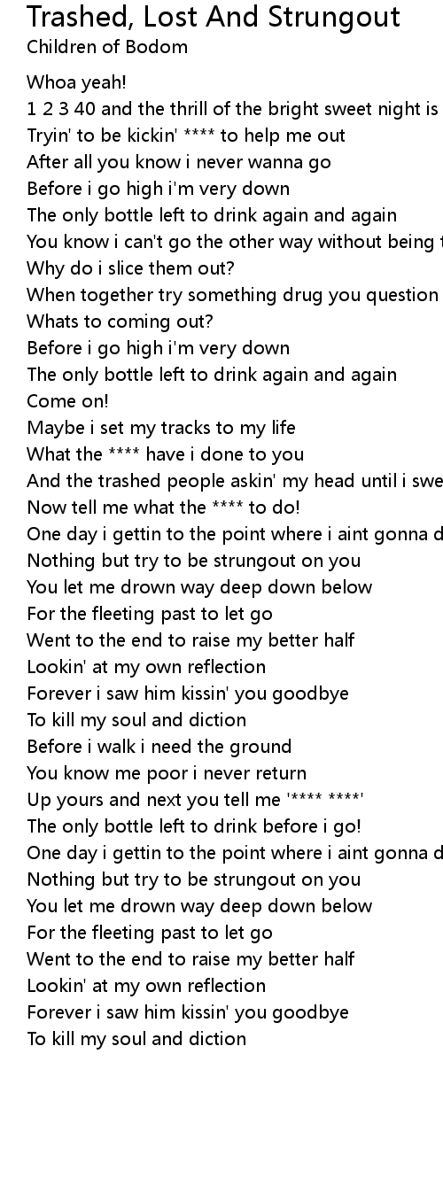 You know i can't go the other way without being trashed lost and strungout |