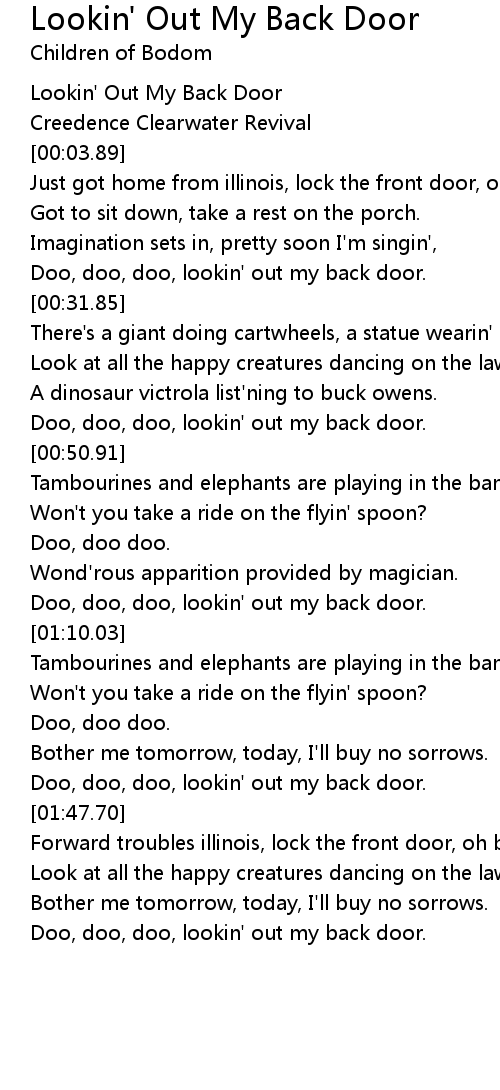 [02:14.19] Doo, doo, doo, lookin' out my back door.