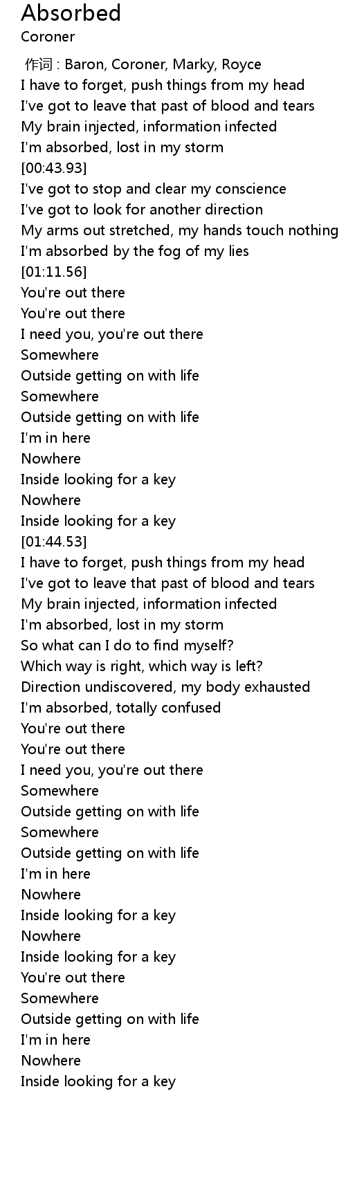 | [03:01.14] | I'm absorbed, totally confused |