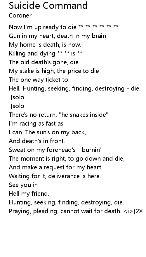 | [2X] | Praying, pleading, cannot wait for death. <i> |