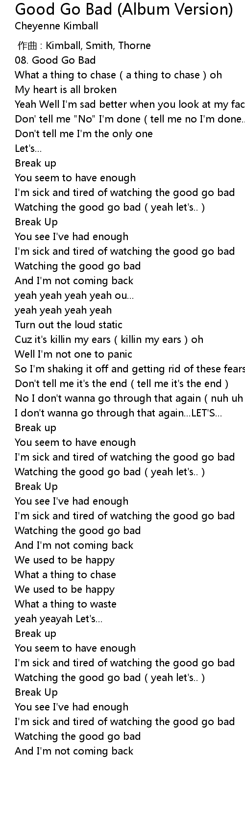 | [02:05.04] | Watching the good go bad(yeah let's..) |