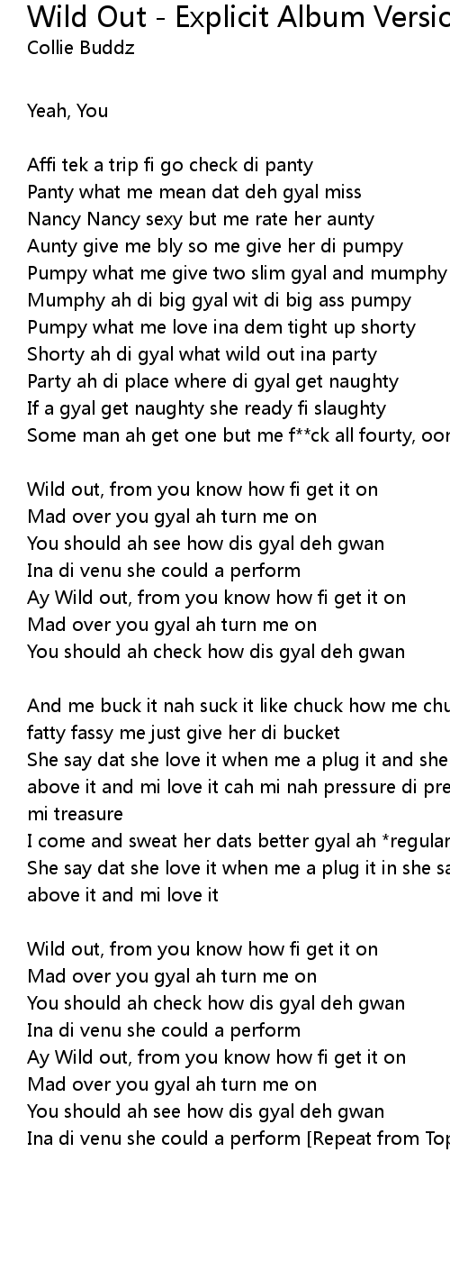 And me buck it nah suck it like chuck how me chuck it and if a gyal a lick like fatty fassy me just give her di bucket |