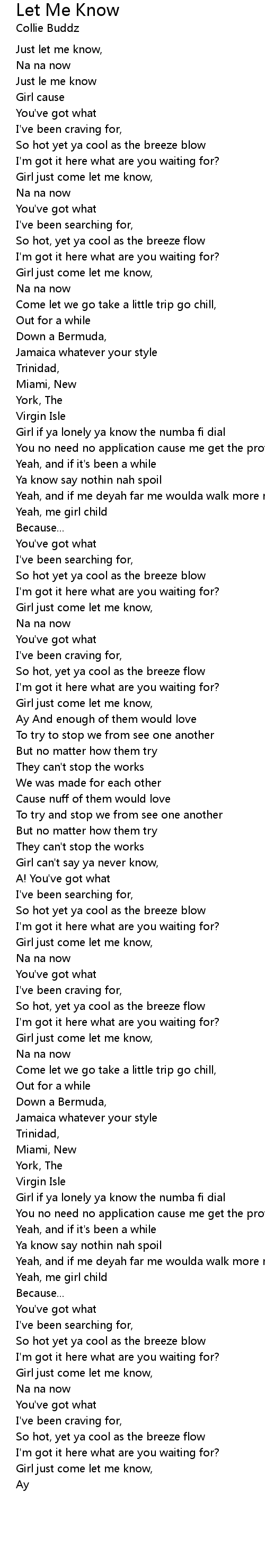 Girl just come let me know, |