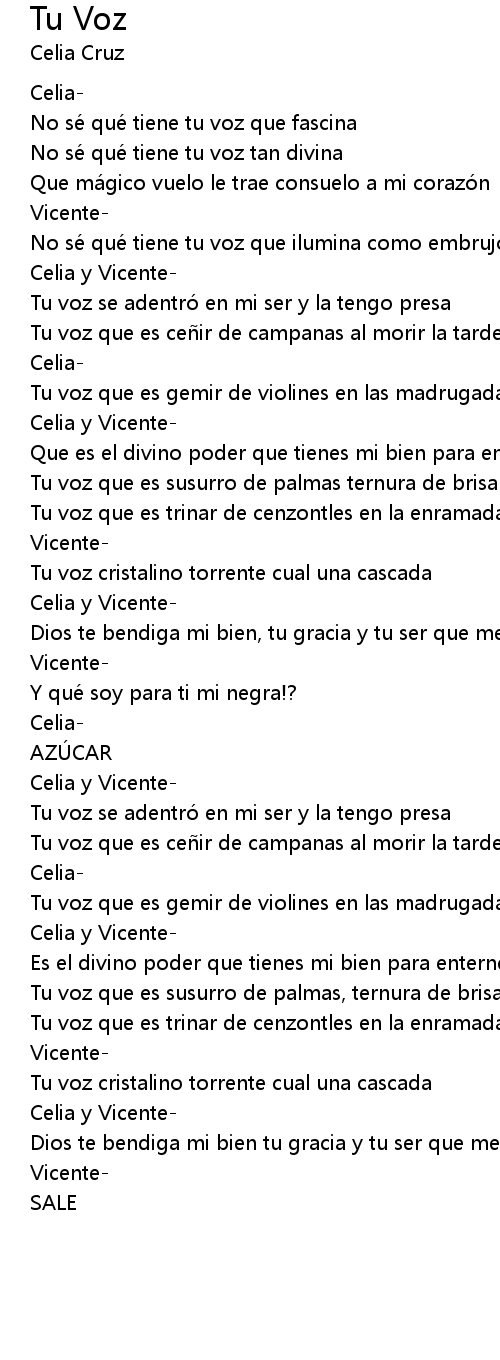 | No se que tiene tu voz que ilumina como embrujo de magia a mi pasio n | |