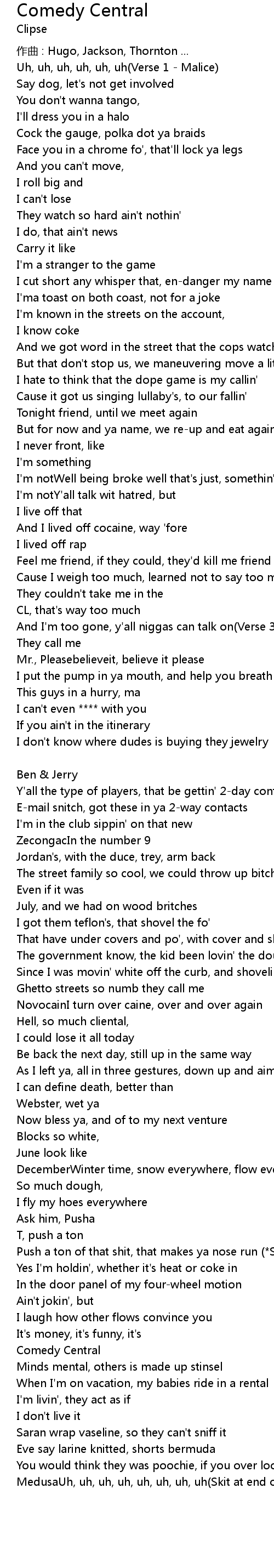 | Since I was movin' white off the curb, and shovelin' snow(Verse 3 - Pusha T) | |