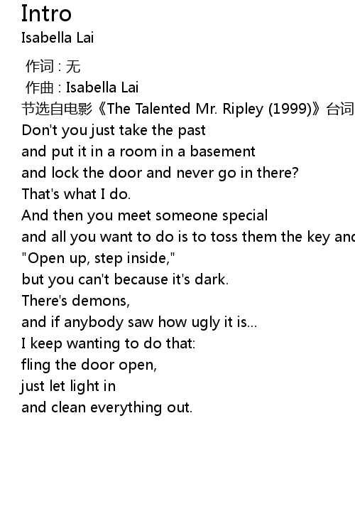 | [00:00.182] | jié xuǎn zì diàn yǐng The Talented Mr. Ripley 1999 tái cí |