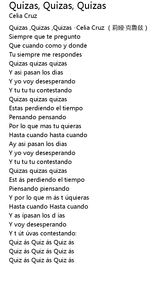 | [00:00.00] | Quizas , Quizas , Quizas Celia Cruz lì yà kè lǔ zī |
