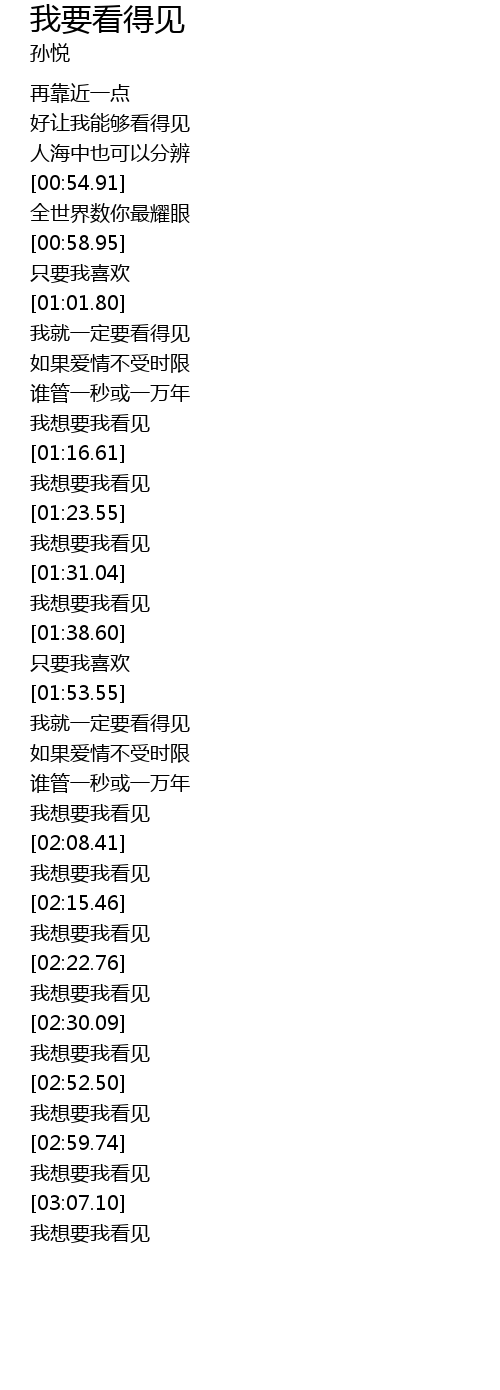 | [03:04.27] | wǒ xiǎng yào wǒ kàn jiàn |