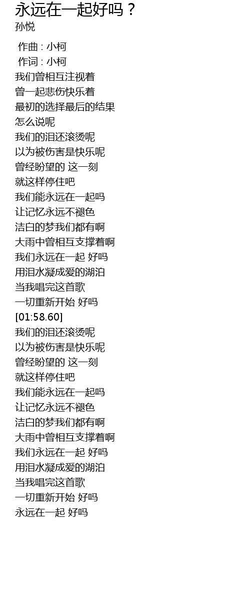 | [03:09.96] | 我们永远在一起 好吗 |