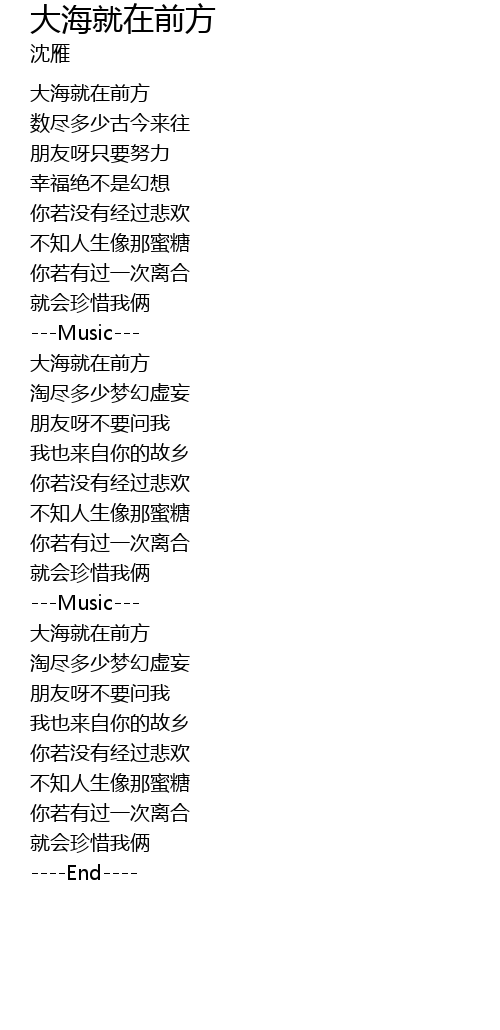 | [01:42.51] | dà hǎi jiù zài qián fāng |