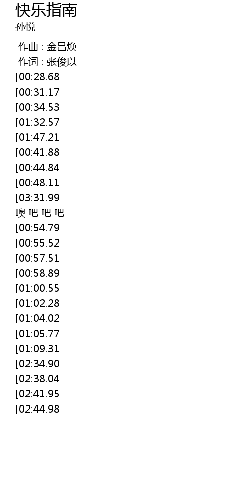 | [02:03.98][01:32.57][01:26.22][00:38.27] | 别让那快乐走了 噢 吧 吧 吧 |