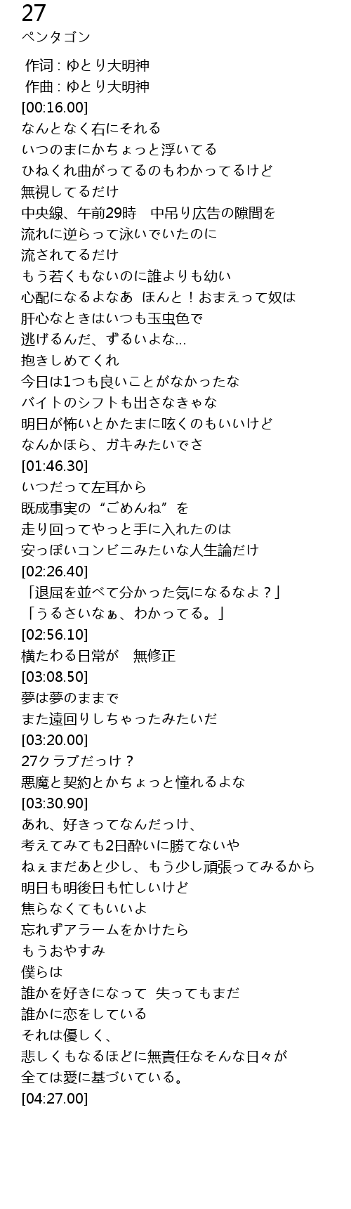 | [00:26.70] | いつのまにかちょっと浮いてる |