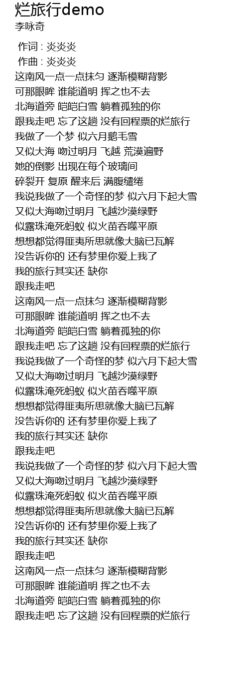| [00:00.000] | 作词 : 炎炎炎 |