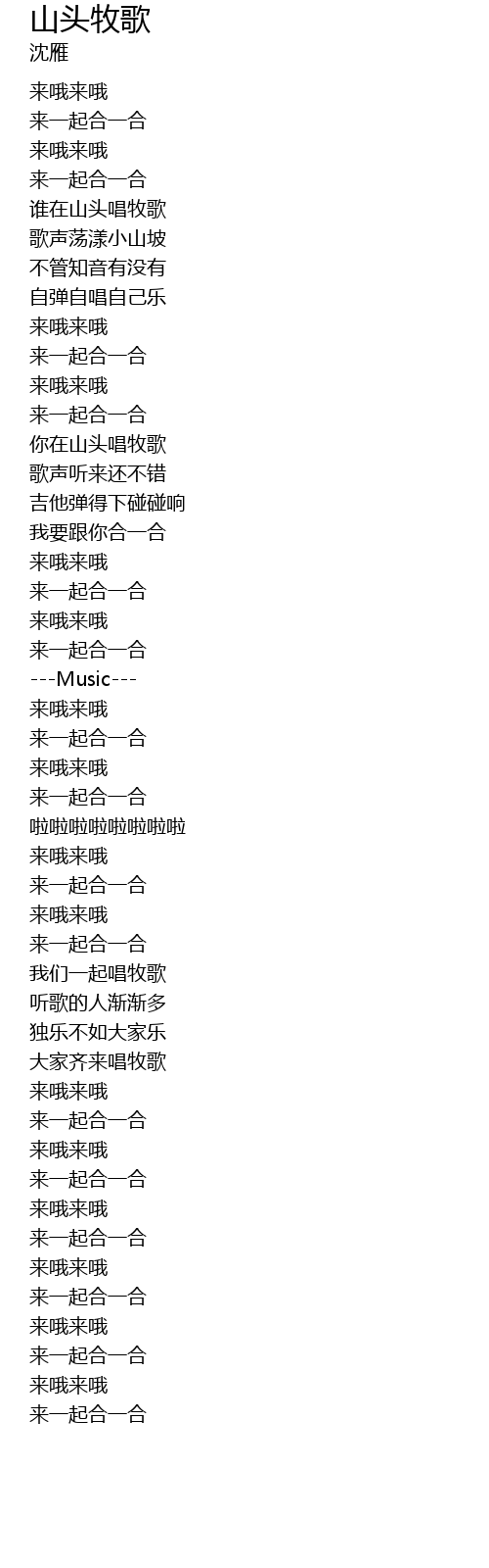 | [00:42.47] | nǐ zài shān tóu chàng mù gē |
