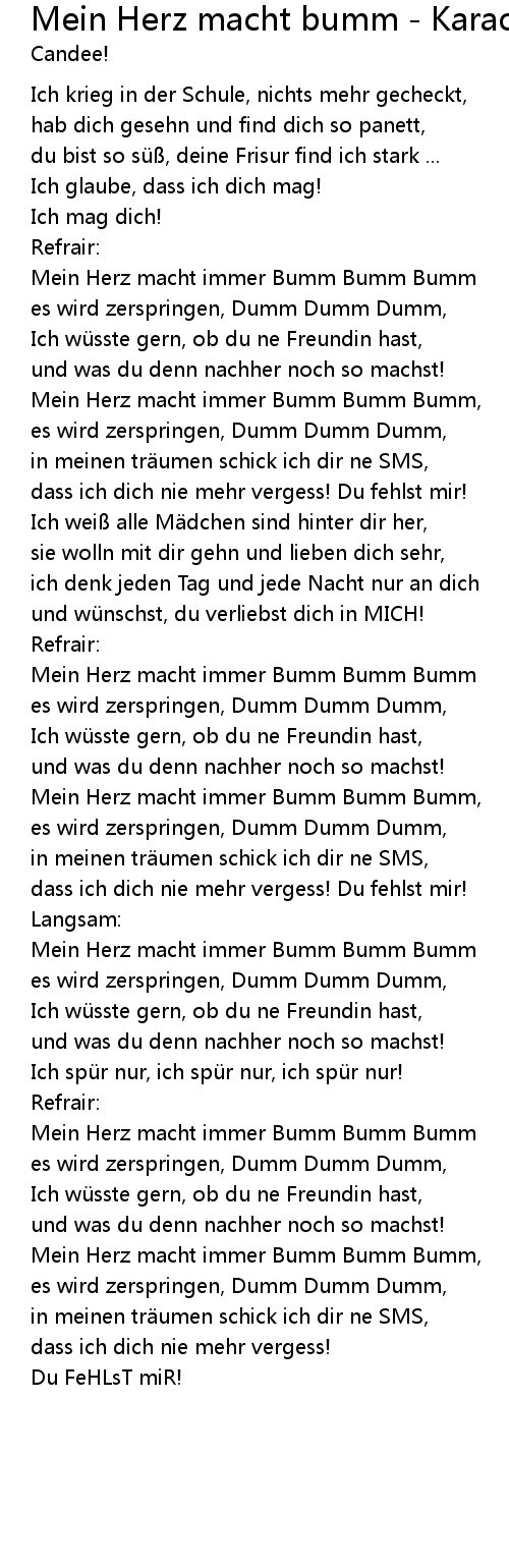 | Song | Mein Herz macht bumm - Karaoke Bonus Track |