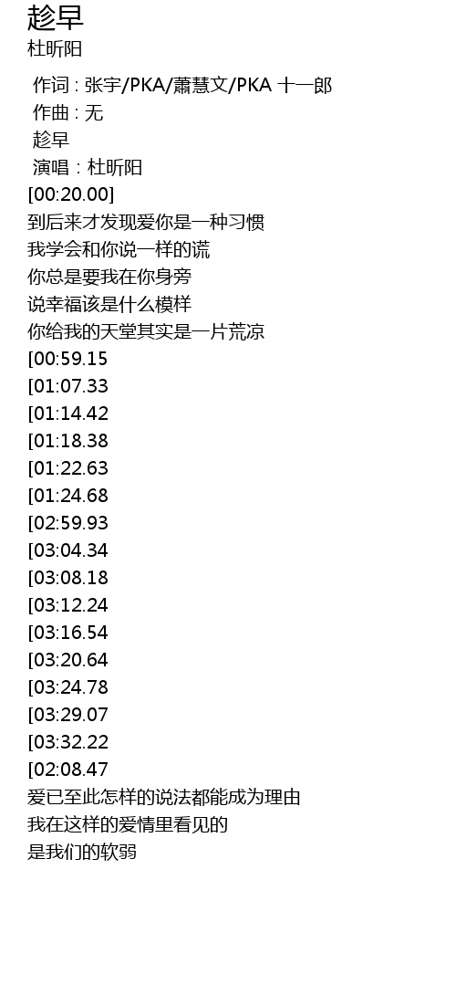 | [04:26.79][03:24.78][01:55.69] | 若有情太难了想别恋要趁早 |