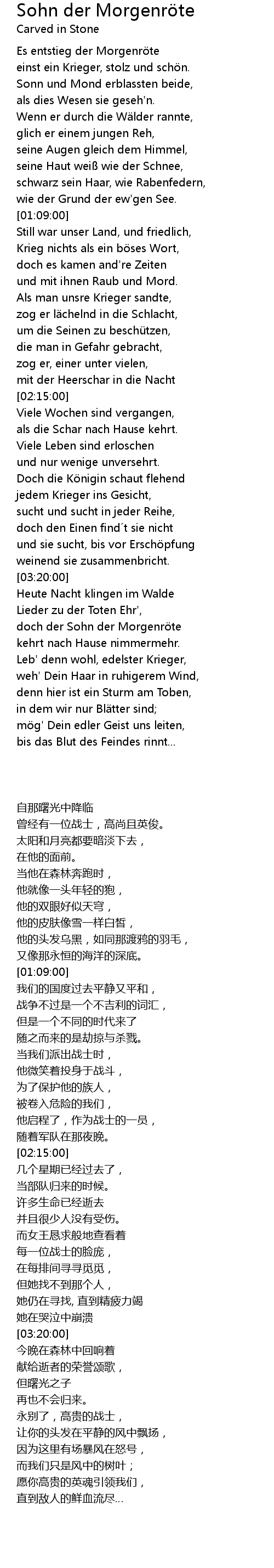 | [00:17:00] | einst ein Krieger, stolz und schön. |
