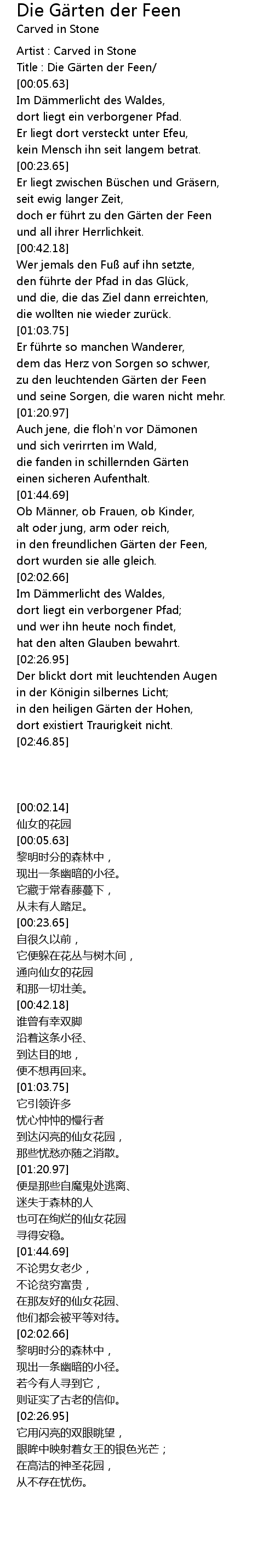 | [00:04.17] | Title : Die Gärten der Feen/ |