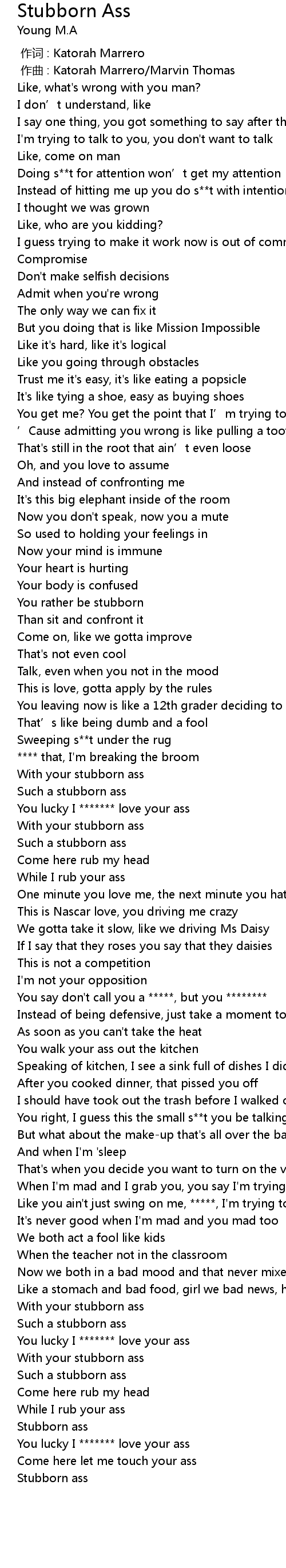 | [03:17.00] | Stubborn ass |